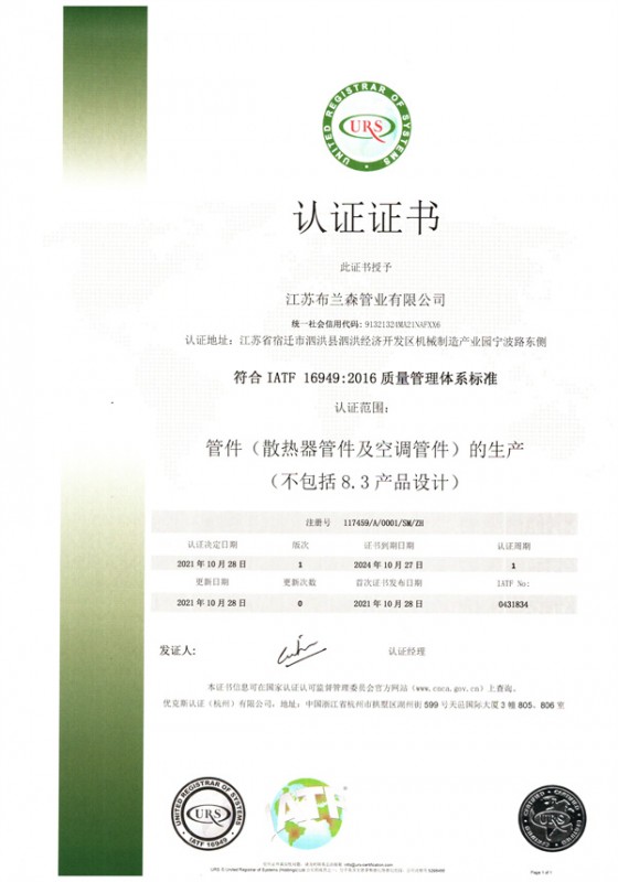 布蘭森熱傳輸新材有限公司二○○七年創立于廣東省深圳市,二○○九年成立江西布蘭森熱傳輸新材有限公司,2020年成立江蘇布蘭森管業有限公司,公司坐落在江蘇省泗洪縣青陽工業園內,公司自購廠房,投資1.5億元人民幣,廠房占地面積42畝,廠房建筑面積1.5萬多平方米,員工人數150多人,合作客戶200...